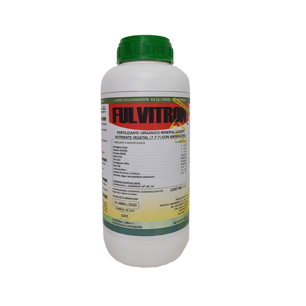 Formula 20-30-10 con microelementos, hormonas vitamina B1, aminoácidos y ácidos fulvicos.